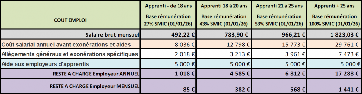 Ainsi l'employeur reçoit l'aide chaque mois à partir de la date de signature du contrat d'apprentissage, selon la durée du contrat d'apprentissage, dans la limite de 12 mois maximum.